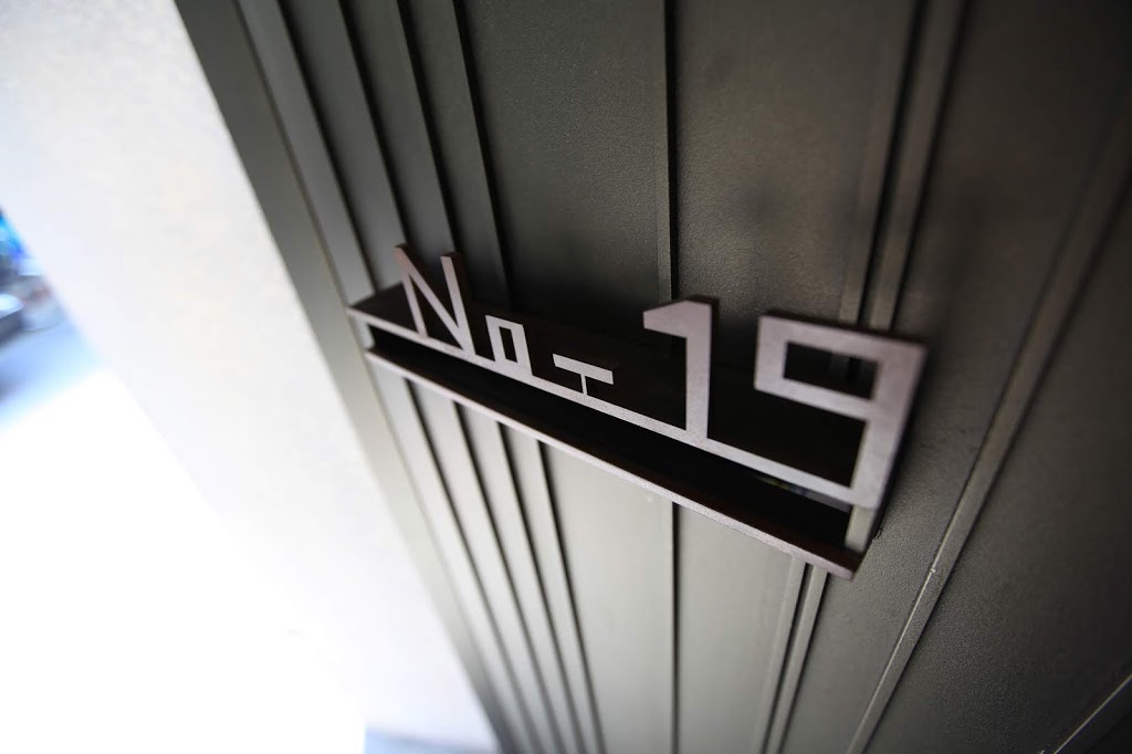 刻意鏽蝕的鐵件,鏤空出設計落成年份與屋主姓名,內斂描繪生活記憶。