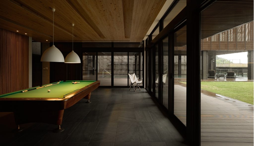全戶環景式落地窗讓洗浴休憩時光將四季風情盡收眼底,空間中大量體木材與大理石間的律動同樣無懈可擊,無論室內或室外處處是美景。