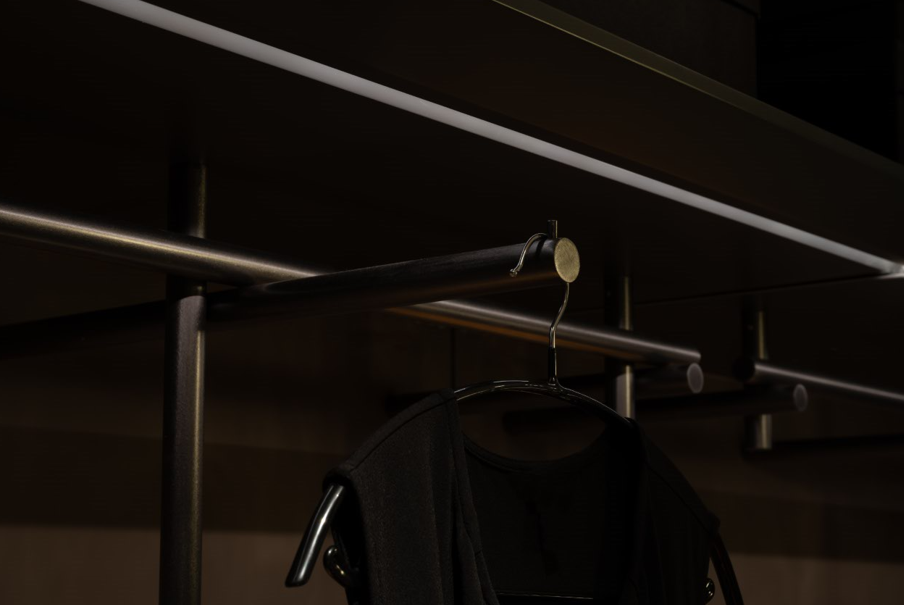 因此更衣室收納設計需特別重視:櫃體規劃、動線流暢、秩序與美感