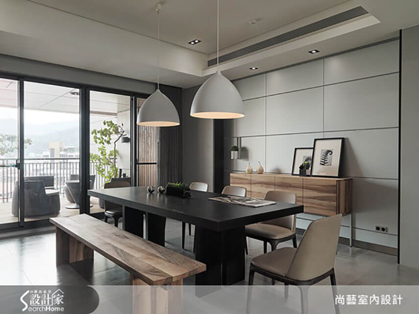 設計師透過材質混搭方式來做表現,一剛一柔,讓空間充滿不一樣的情感溫度。